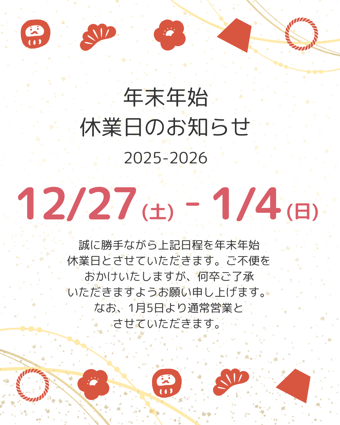 記事: 年末年始 休業日のお知らせ